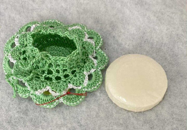 Each little hat comes with a wee gift soap inside which can be taken out by untying the little bow underneath. (see photo below)