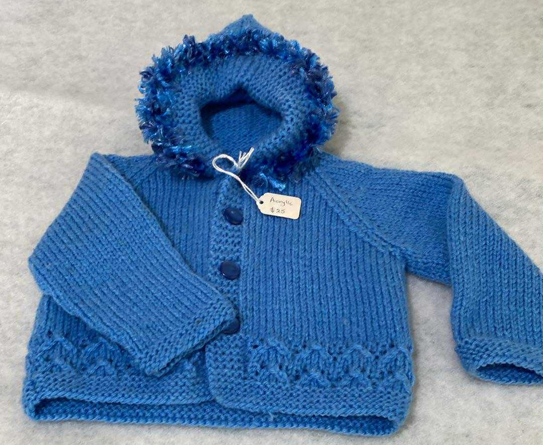 $10.00Blue Hooded Jacket – Fits 1 – 3 month approx – Acrylic Wool